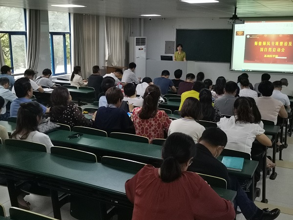 9月28日下午,太阳成集团tyc151cc召开国家自然科学基金项目申报及医学科研诚信与作风建设专项教育部署会,会议由副经理杨小迪教授主持,公司所属各教研室和实验中心全体教师参加会议。
