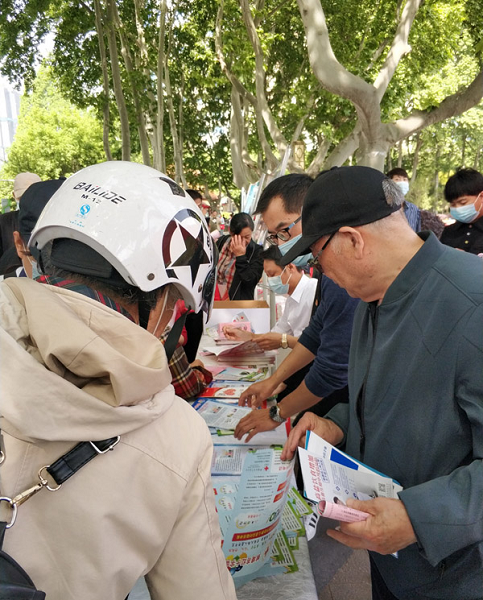在太阳成集团tyc151cc的宣传展位前,志愿者结合高等教育立德树人的根本任务和医学教育的特点,向市民开展献血液、献造血干细胞、献人体器官组织等宣传活动,耐心细致地介绍遗体(器官)捐献的相关知识、意义和流程,呼吁全社会行动起来,积极参与到爱心队伍中来,充分弘扬“人道、博爱、奉献”的红十字精神,为促进精神文明建设、打造和谐社会奉献光和热。