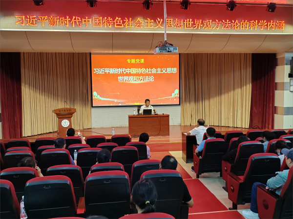 根据公司党委关于学习贯彻习近平新时代中国特色社会主义思想主题教育讲授专题党课工作安排,6月14日下午,公司党委常委、副书记姚文兵在集团学术报告厅为太阳成集团tyc151cc全体教师党员和研究生党员讲授《习近平新时代中国特色社会主义思想的世界观和方法论》专题党课。