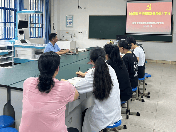 6月14日上午,病理生理学与机能实验中心党支部开展第五次党纪学习教育暨主题党日活动,全体教职工党员及入党积极分子参加。