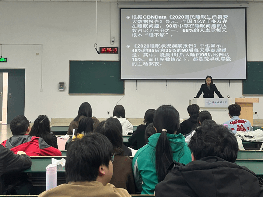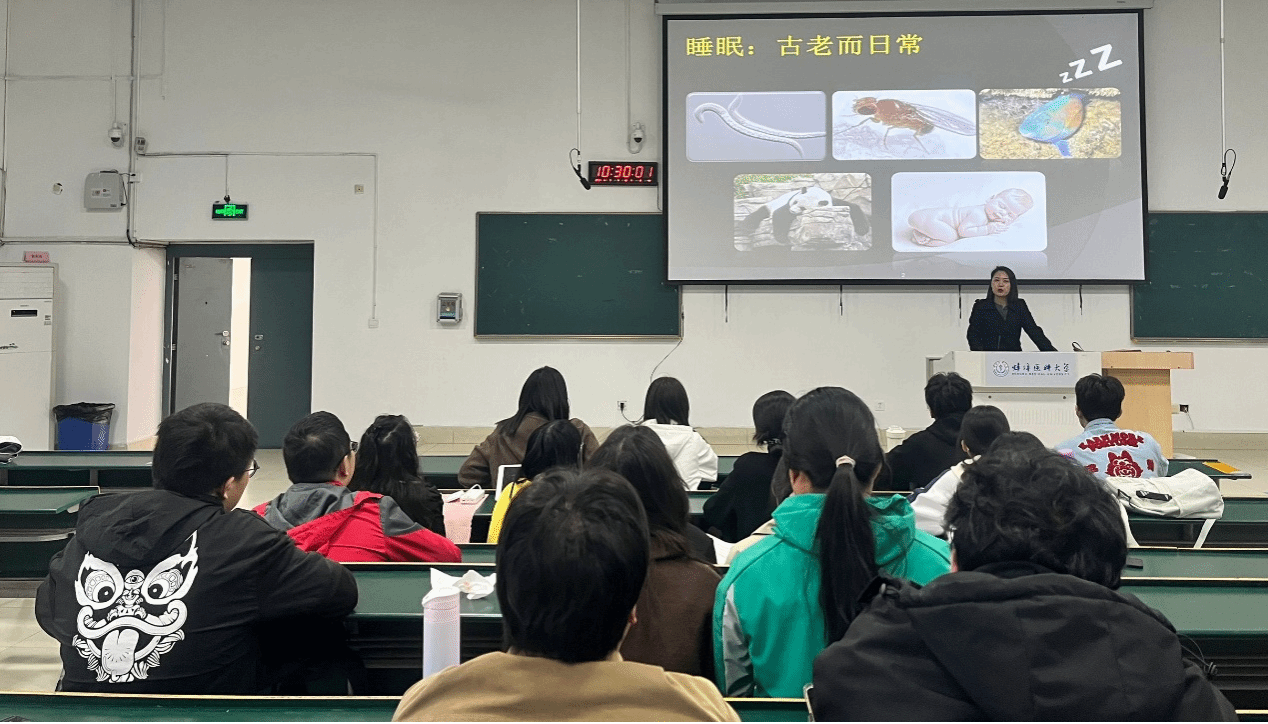 本次授课内容为《情绪、抑郁、焦虑》,李姝婧围绕睡眠的时相、类型、生理意义、时相的周期性交替及睡眠-觉醒时相解析等教学内容展开讲解,理论能联系实际加强教学互动与讨论。李教授充分挖掘专业内容背后蕴含的育人元素,以科学家经意外的实验发现“控制睡眠昼夜节律分子机制”获取诺贝尔生理学奖为例,倡导学习科学家的奉献和探索精神,增强脑科学研究的好奇心和求知欲,投身脑科学研究。同时以文献摘要阅读等方式介绍睡眠与肥胖、抑郁症、焦虑症、中风、高血压、学习记忆等疾病密切相关,在初步培养员工科学素养的同时,让员工合理安排学习工作娱乐的时间,保证睡眠时长,增加睡眠质量,关心员工身心健康。