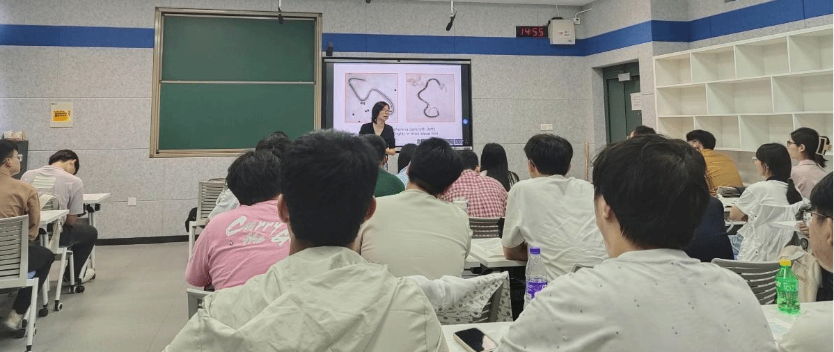 下午授课时,王兆军为“交医班”员工讲授病原生物中线虫的相关知识。她以临床病例为切入点,逐步引导员工学习粪类圆线虫、丝虫、眼部寄生线虫、旋毛虫及广州管圆线虫等内容。王教授讲解深入浅出,生动有趣,激发了员工浓厚的学习兴趣。她还将课程内容延伸至国情与全球卫生视野,帮助员工理解知识在未来实践中的应用前景,进一步增强了员工的学习动力。